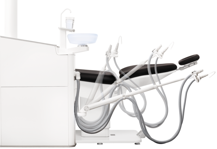 Nogle vælger at sætte behandlingsenheden og patientstolen sammen som en låst enhed. Ulempen er dog, at du dermed ikke frit kan indrette dit klinikrum og placere behandlingsenheden og patientstolen individuelt i forhold til hinanden.